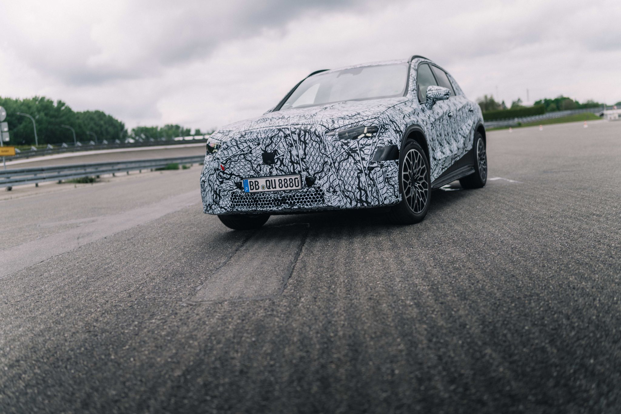 Trotz Tarnung sind klare EQ-Designmerkmale erkennbar: geschlossene Front, bündige Türgriffe, fließende Linien. Die Weltpremiere ist zur IAA Mobility 2025 geplant, Marktstart im Frühjahr 2026.