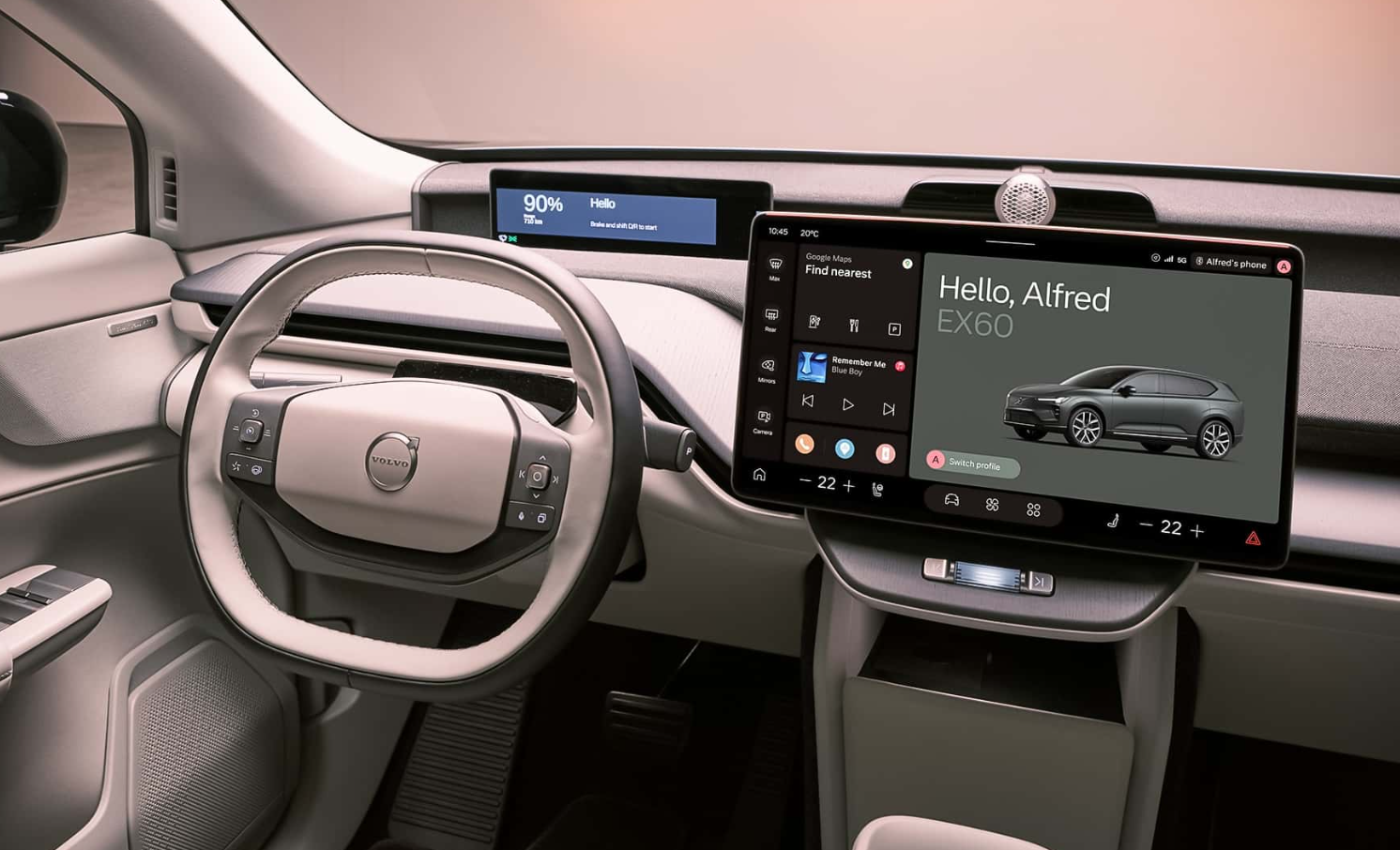 Der Innenraum des EX60 kombiniert minimalistisches skandinavisches Design mit modernster Technik. Herzstück ist das Infotainment-System mit Google Gemini KI-Assistent, das natürliche Sprachsteuerung und Alltagsintelligenz bietet. Dank Over-the-Air-Updates (OTA) bleibt das Fahrzeug stets aktuell – ein echter Vorteil gegenüber klassischen Verbrennern.
