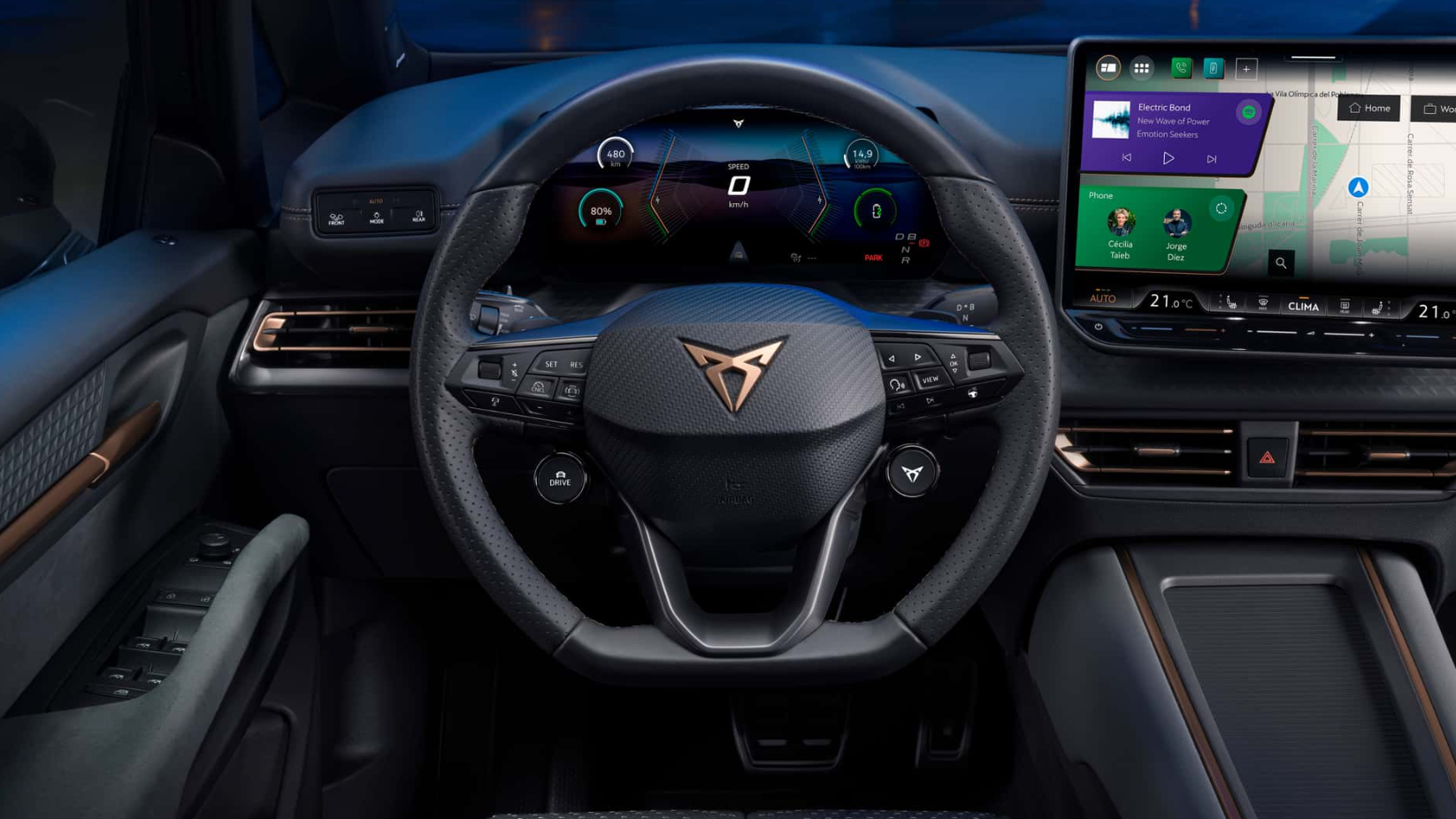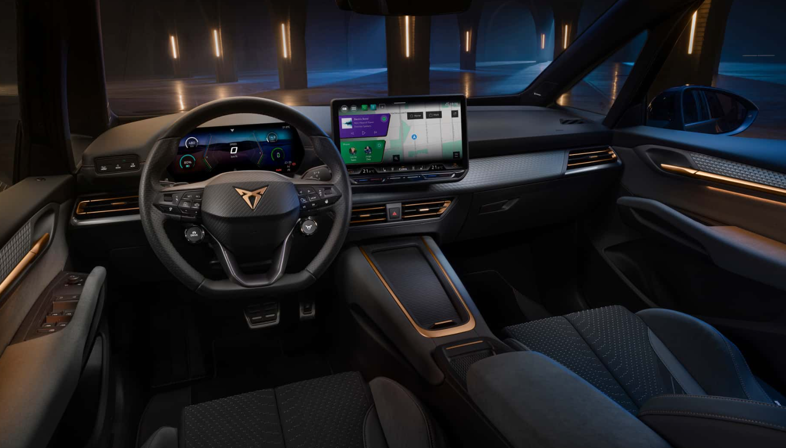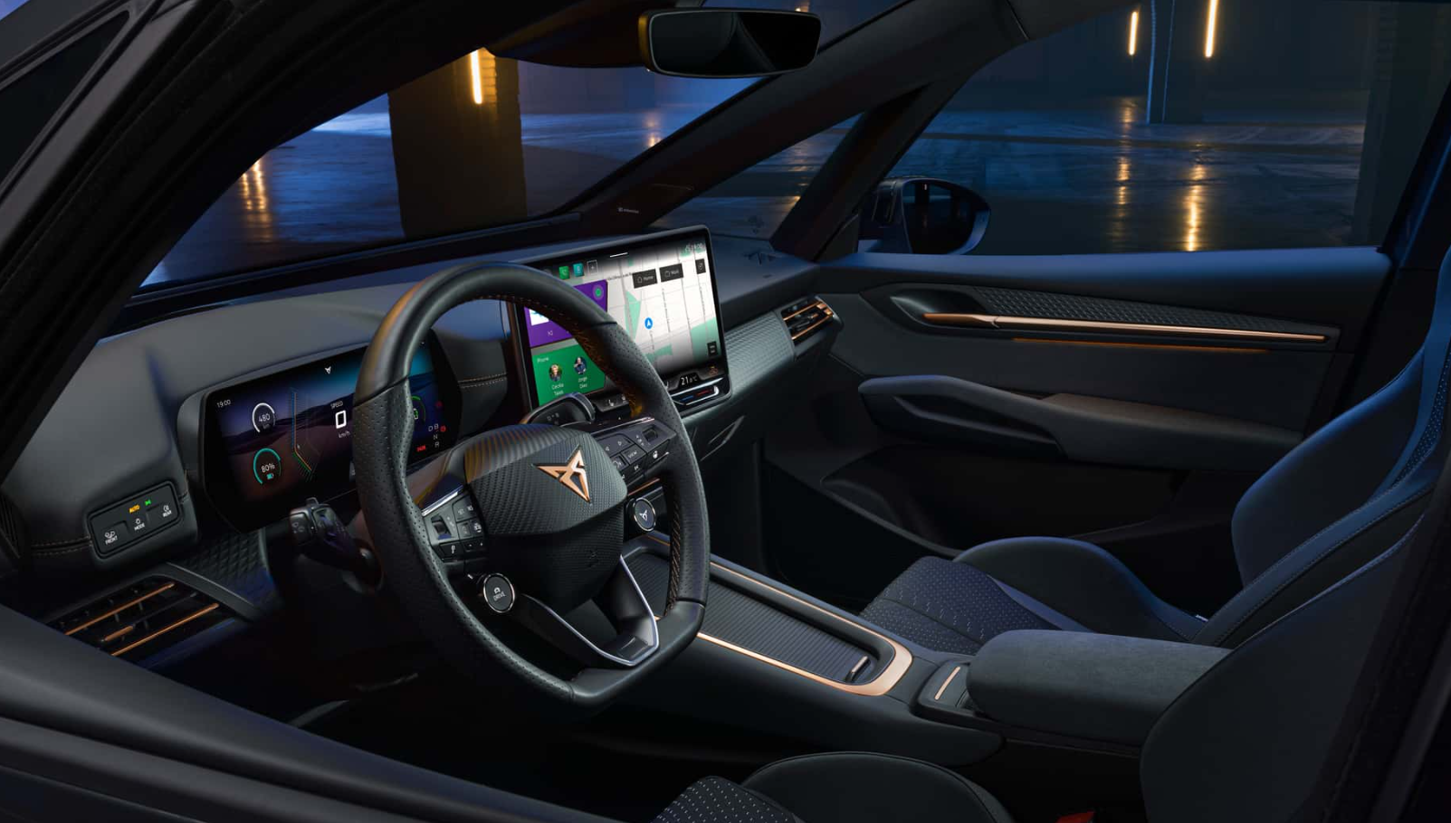 Im Innenraum setzt Cupra stärker auf Technik und hochwertigere Materialien. Herzstück ist ein neues Infotainmentsystem mit 12,9-Zoll-Touchscreen und aktualisiertem Betriebssystem. Ergänzt wird es durch ein vergrößertes 10,25-Zoll-Digitalcockpit.